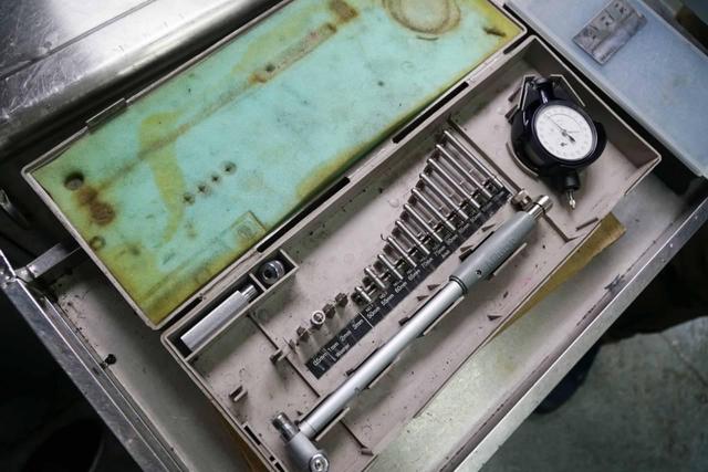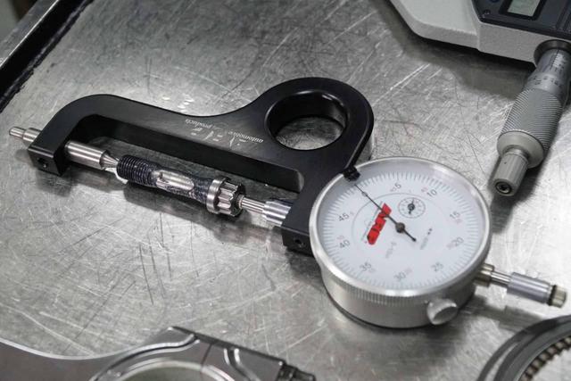 这是测量气缸和活塞之间间隙的工具,千分表。