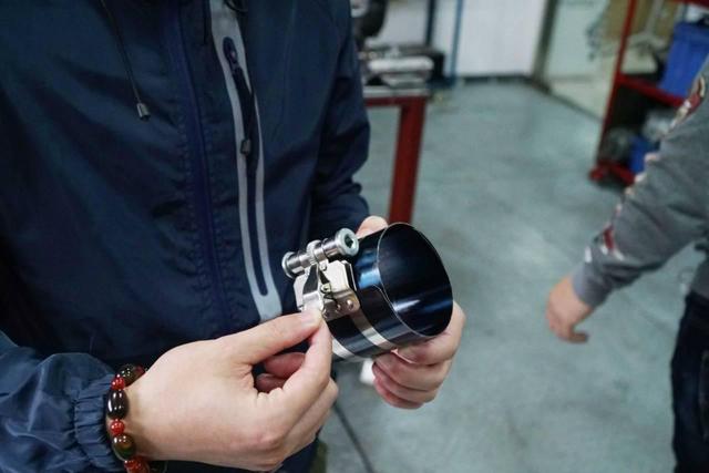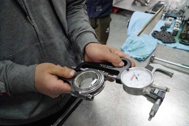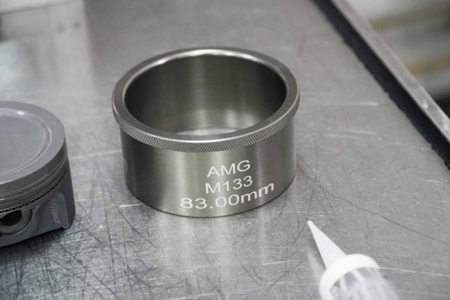 完整做完以上精细的准备工作之后,就开始进入安装步骤。这里有一个值得一提的安装细节,就是这个特地从德国原厂订购回来的安装活塞进气缸的专用工具--活塞环套。由此也可以看出TCP对“精细”的执着追求。