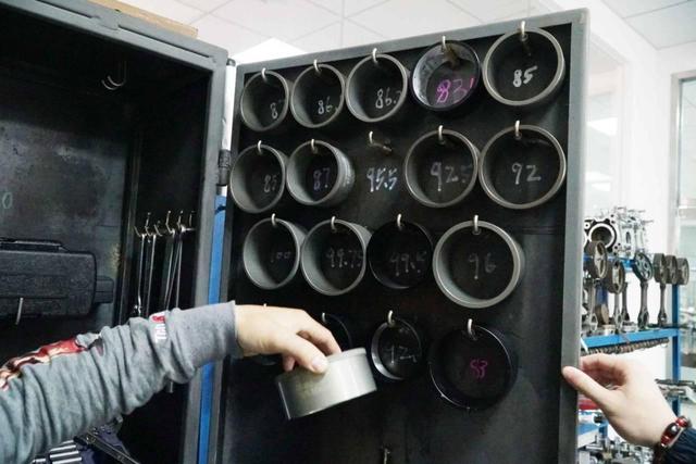 而在一旁的工具箱里,我还发现了成排的活塞环套,每一个活塞环套都对应不同型号的发动机活塞,专套专用。