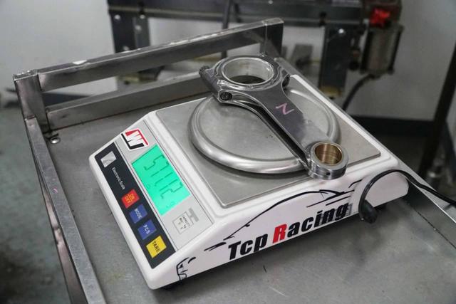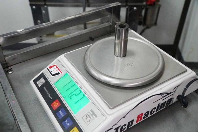 接下来进行的步骤是称重。下图为称重的精密仪器,精确到0.01g,用以称量活塞销和连杆组件的重量。这样做的目的是为了确保在装配时按同一重量组进行装配,发动机内部组件是很精密的部件,任何超出标准值的误差都可能影响发动机的性能。
