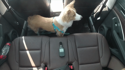 当毛毛去到CRV车内时,很明显是比较清晰的听到了车外大声公播放的叫声,有扒拉车门想出去的动作。只要让它呆在这种环境下的时间稍微久一点,甚至还会不停晃动尾巴,表现出很紧张的感觉。