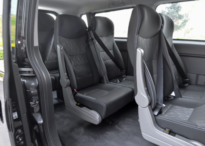 至于前后排的走道应该怎么设计,这点就值得商榷。如果是把通道放在右侧(像奔驰威霆9座那样),虽然座椅布局很归一,但是后三排座位左边的乘客舒适性就会打了折扣。而把过道放在中间的话,则前中后四排座位至少有三排需要安放独立座椅。独立座椅、安全带等零部件的成本,或许会比连排座椅要高。