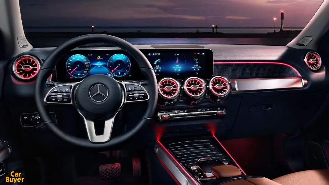 因为,它除了有奔驰标志性的双10.25英寸双联屏,带记忆和感应式的电动尾门以外,还有夜晚绚丽多彩的64色氛围灯,以及只需6000元加装的柏林之声音响。同时,几何多光束大灯这样高档的配置在它身上,也只需花费5400元加装便可得到。